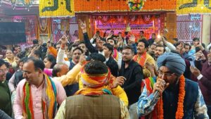 शहर के ददुआ बाजार स्थित श्री श्याम मंदिर का तीन दिवसीय वार्षिकोत्सव कार्यक्रम के आखिरी दिन गुरुवार को सांयकाल भजन संध्या का आयोजन किया गया। जिसमें सर्वप्रथम गणेश वन्दना से भजनों की शुरुआत हुई। फिर स्थानीय भजन गायक परमानंद शर्मा,करन पटवा, अंकित लवी,गोकुल शर्मा और पुनीत बंसल ने भजनों की हाजिरी लगाई। उसके बाद जयपुर से आयें भजन गायक आयुष सोमानी ने गाया,,ऐसा कर दो श्रृंगार सब देखते रह जाएं …जब बिन बोले मिलता तो बोल के क्या मांगू….हाथों में लेके निशान चला रे,हम तो अपने बाबा के धाम चला रे … किस्मत नहीं है ये बाबा कृपा है तेरी ..खाटू बुला रहा है कृपा नहीं है तो क्या हैं .. रखो गे लाज मेरी रखो गे लाज ..हम तो बाबा के भरोसे चलते हैं..इतनी कृपा सांवरे बनाए रखना,मरते दम तक सेवा में लगाएं रखना .खाटू वाले हमें बुला ले फागुन में भरोसा पूरा हैं.. म्हाने भी बुला रे बाबा खाटू नगरिया… फिर खलीलाबाद से सुप्रसिद्ध भजन गायक सरदार हरमहेंद्र सिंह रोमी ने गाया, सारे अपने थे कौन काम आया,मेरी मुश्किल में मेरा श्याम आया ..