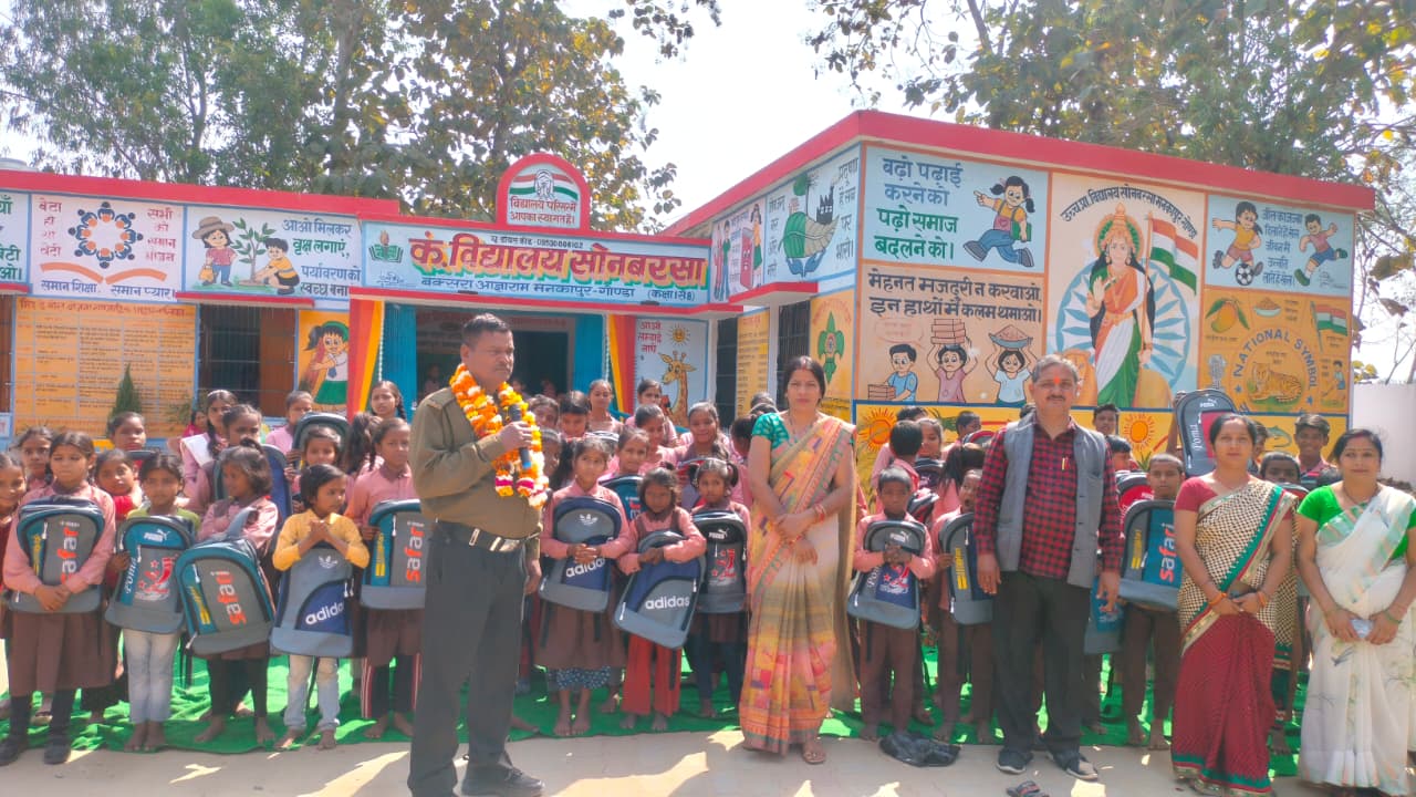 सोनबरसा स्कूल के बच्चों में बांटे गए बैग और पढ़ाई की कॉपी पेंसल