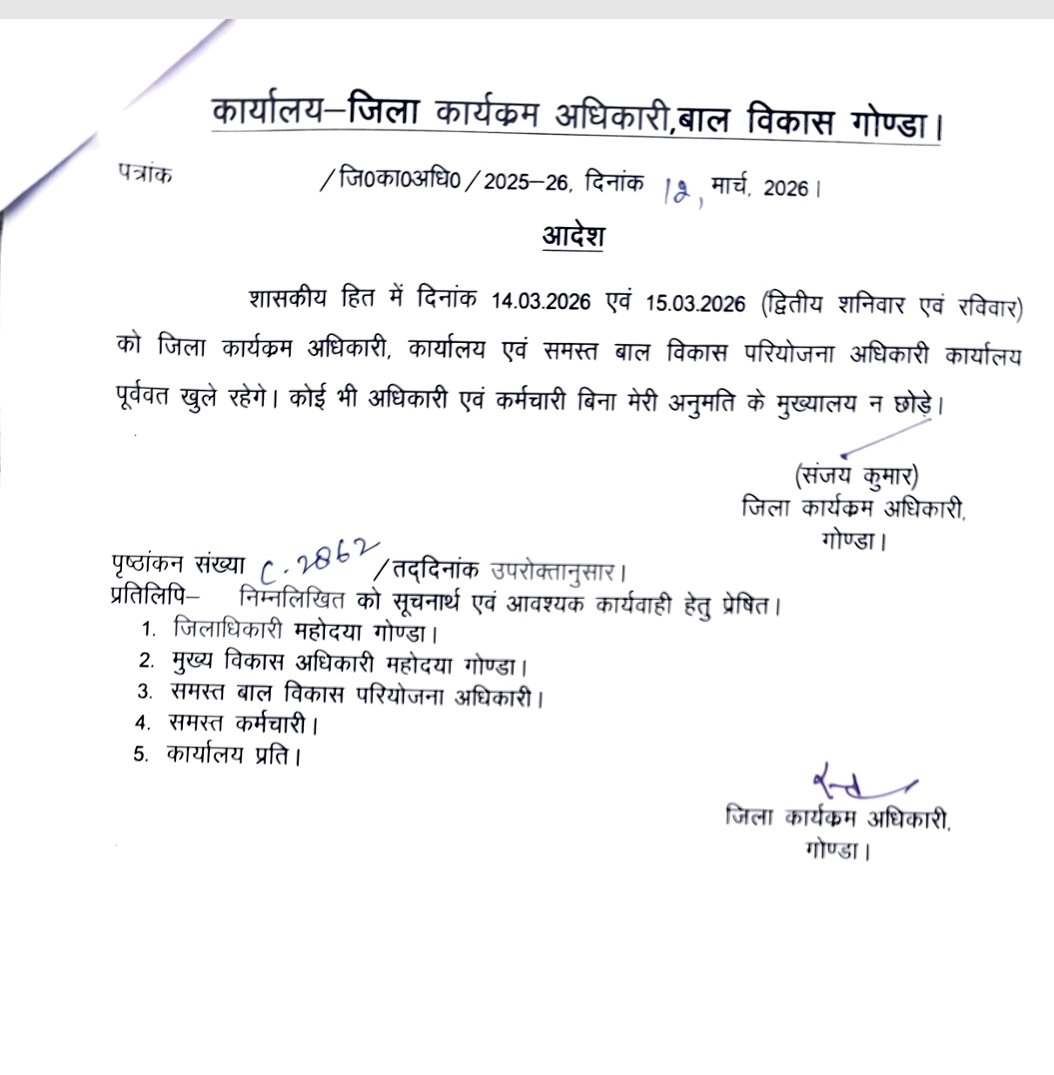 बताया जाता है कि जिला कार्यक्रम अधिकारी संजय कुमार द्वारा जारी आदेश में दूसरे शनिवार और रविवार के नियमित अवकाश को भी निरस्त कर दिया गया है। साथ ही सभी कर्मचारियों को कार्यालय खोलने तथा बिना अनुमति मुख्यालय न छोड़ने के निर्देश दिए गए हैं। इस आदेश के बाद विभागीय कर्मचारियों के साथ-साथ आंगनबाड़ी कार्यकत्रियों और सहायिकाओं में भी नाराजगी बढ़ती जा रही है।